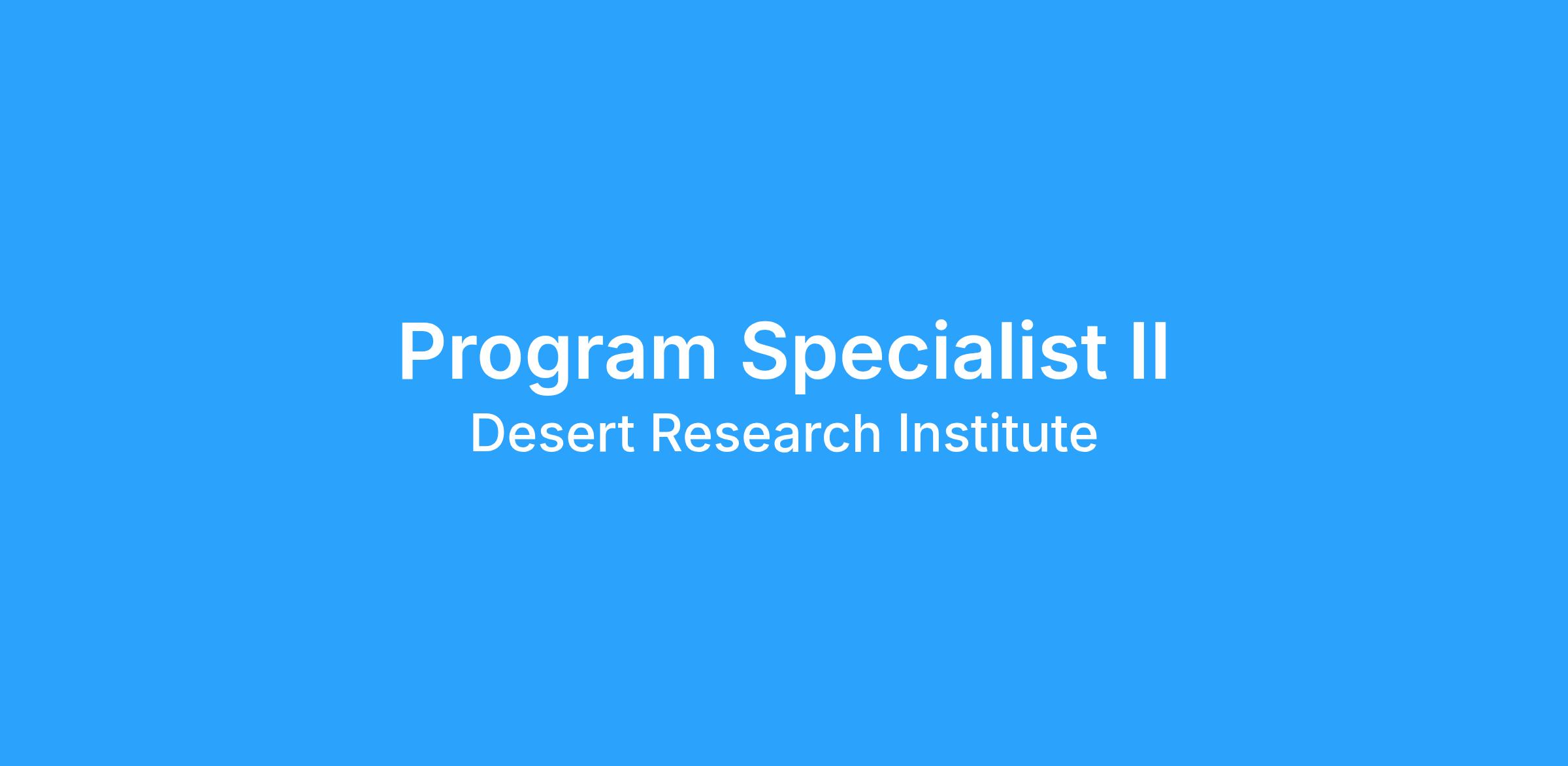 The Desert Research Institute (DRI) is seeking an organized and dedicated team player to fill an in-person, temporary, full-time Program Specialist II position at the Reno, NV DRI Campus. This role will provide administrative support for the Nevada Robotics education program. Under the Nevada Robotics Directorβs supervision, the Program Specialist will support the team by exhibiting attention to detail, sound judgement, confidentiality, and efficiency. Ideal candidates are collaborative and effective communicators with strong interpersonal skills.