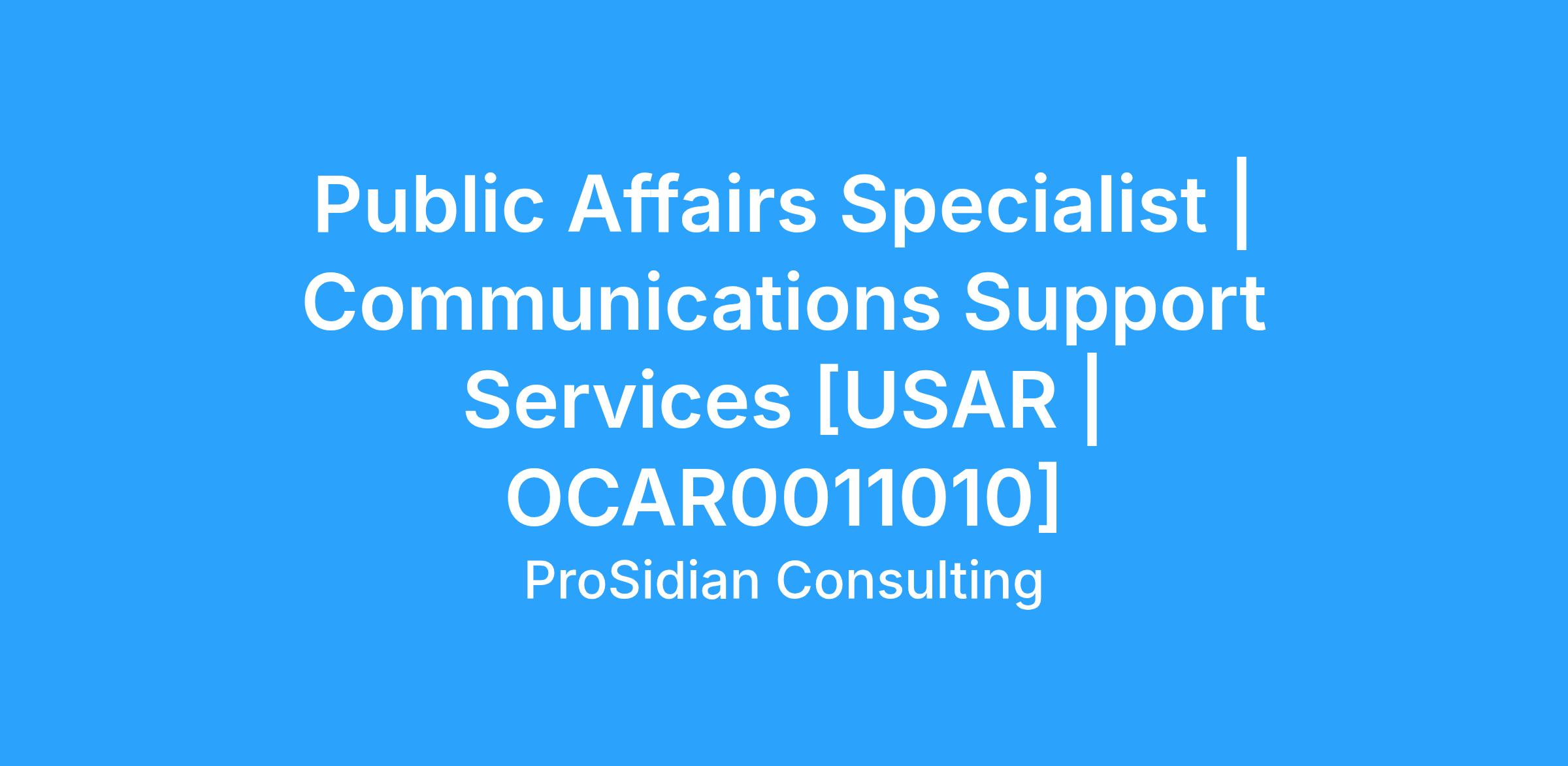 We seekย Public Affairs Specialist | Communications Support Services [USAR | OCAR0011010]ย candidatesย with relevant Aerospace And Defense Sector Experience (functional and technical area expertise also ideal) to support professional services engagement for Aerospace And Defense Sector Clients such as USAR | OCAR.ย This as a Full-Time ProSidian W-2 Communications Support Services Functional Area / Swim Lane / Category Discipline - Army Reserve Communications Support Services Supply/Service Initiative and an employed position with commensurate benefits and competitive salary.