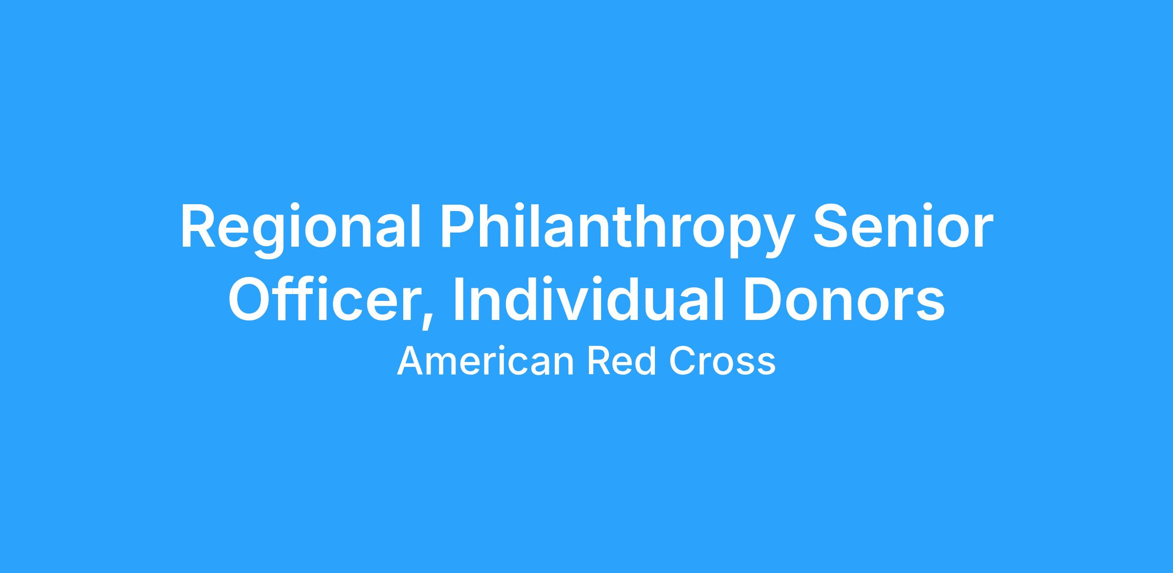 We are looking for a Regional Philanthropy Senior Officer who will meet fundraising goals and objectives and connect with our individual donors in the Chicago area and to serve our mission.β― In this role, you will identify, engage, cultivate, solicit, and steward current and prospective regional donors in expanding their financial support of the work of the American Red Cross.Β Β This position is part of the development team who support the work within the Illinois region and will report to a Director of Development. The position plays an integral role in leading the North Shore and Lake County donor engagement strategy.Β