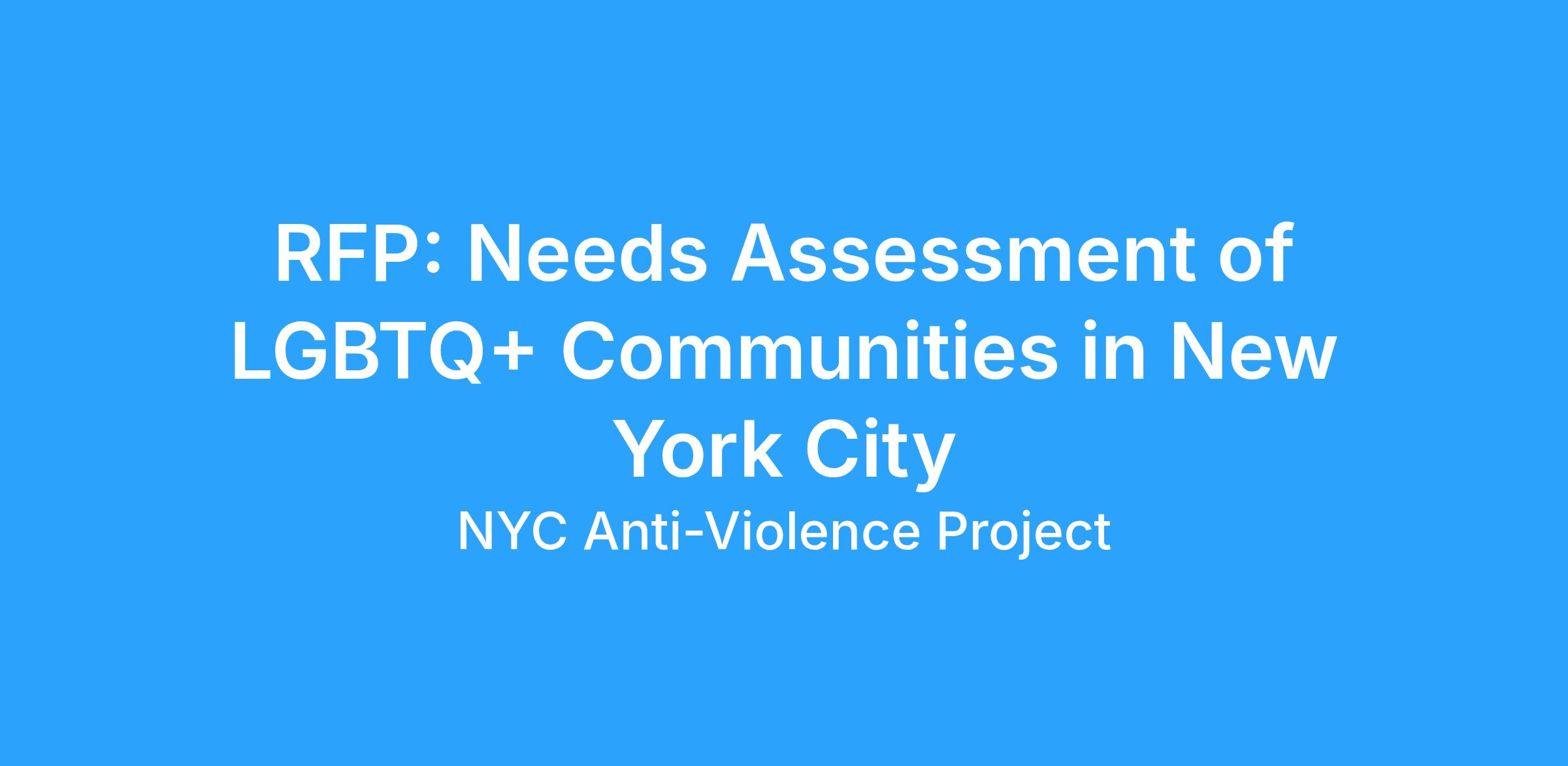 The New York City Anti-Violence Project (AVP) seeks proposals from qualified researchers, consultants, or interdisciplinary teams to conduct a comprehensive Needs Assessment of LGBTQ+ Communities in New York City.Ā