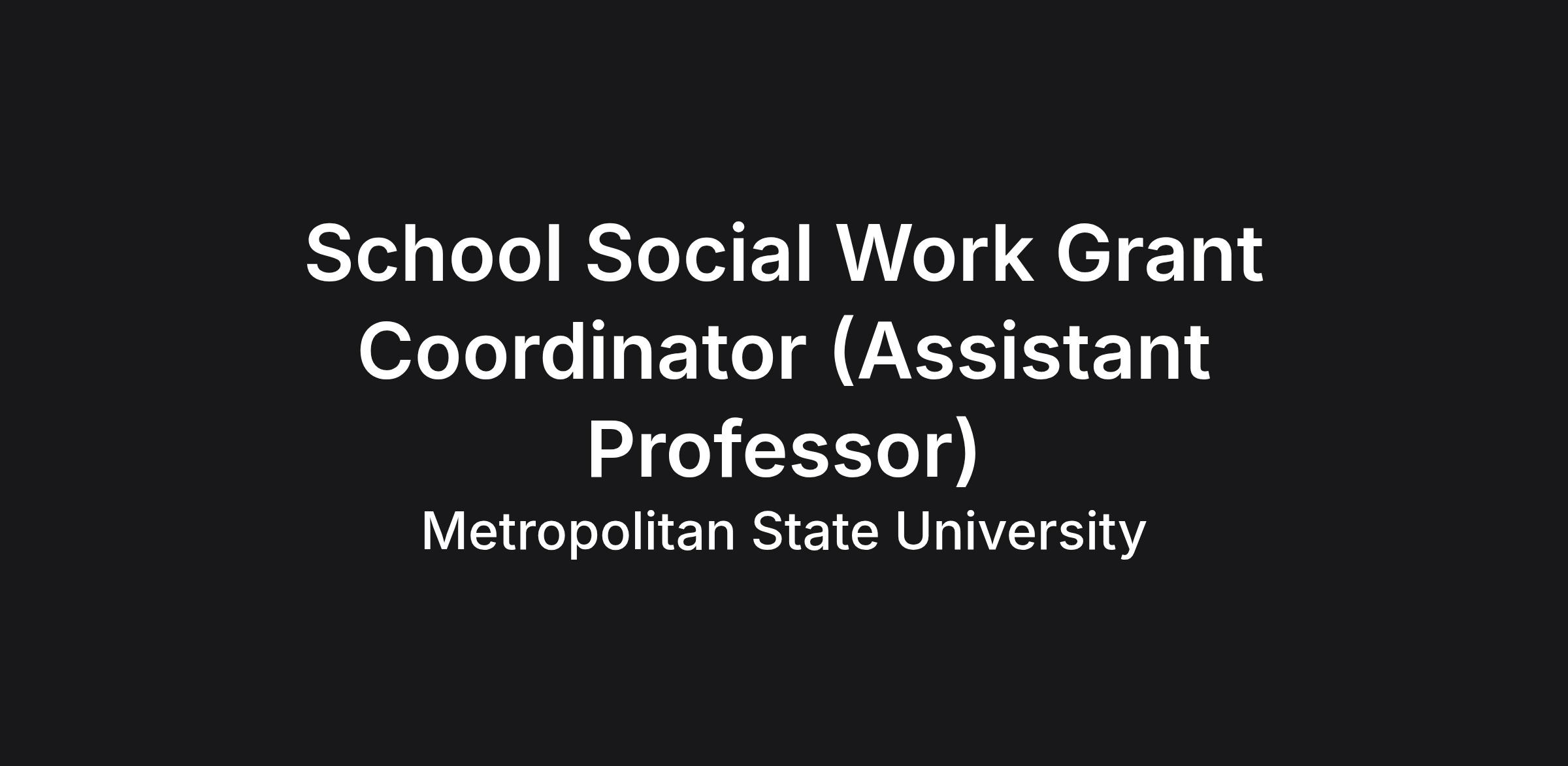 School Social Work Grant Coordinator (Assistant Professor)Institution: