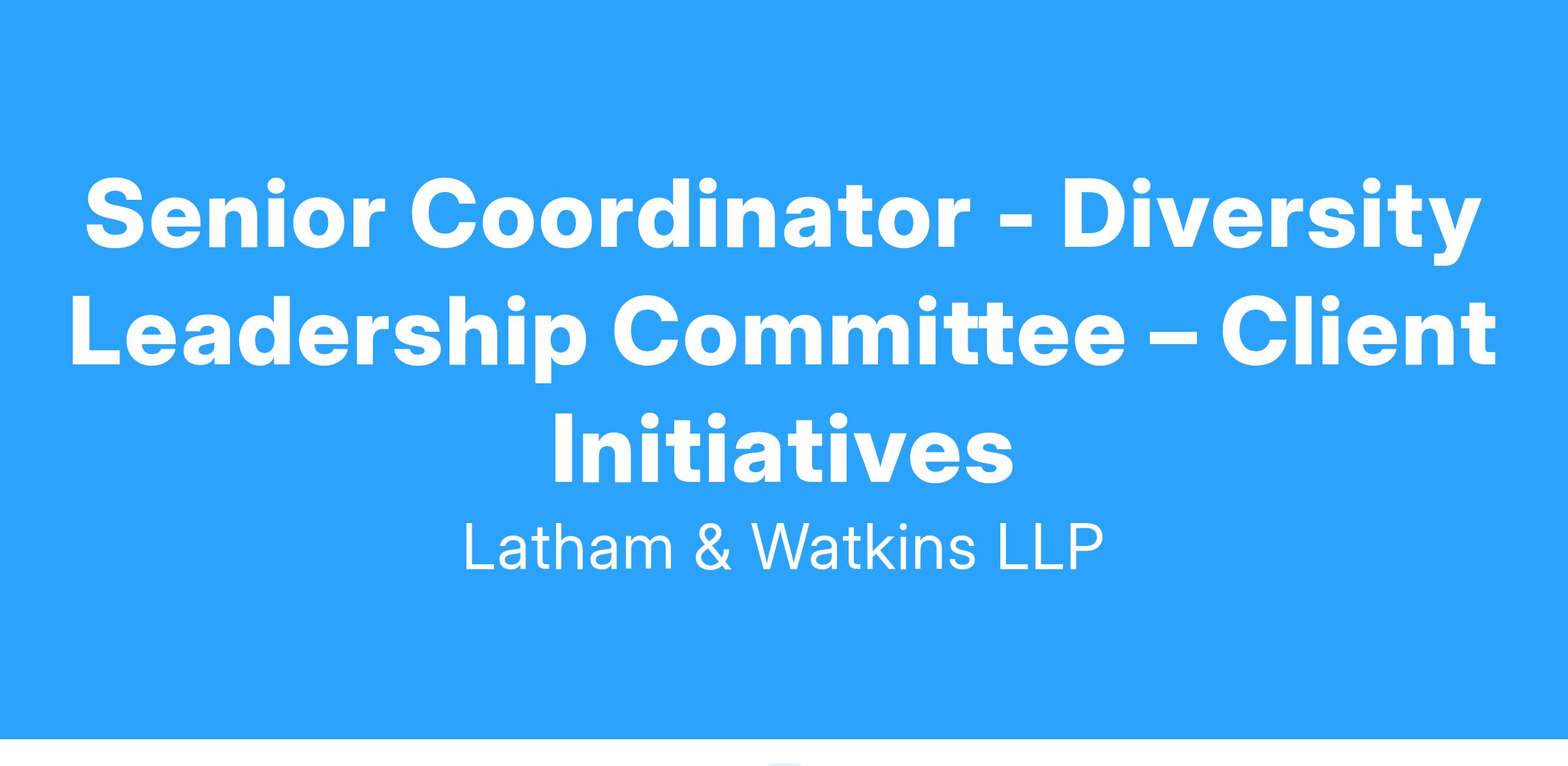 The Senior Diversity & Inclusion Coordinator β Client Initiatives is an integral part of Lathamβs Legal Talent Development team and will be responsible for working with the Senior Manager of Global Attorney Diversity & Inclusion β Client Initiatives, the Senior Diversity & Inclusion Specialist β Client Initiatives, the Director of Global Attorney Diversity and Inclusion, the Diversity Leadership Committee (DLC), and the Women Enriching Business (WEB) Committee to support all projects related to client diversity, equity, and inclusion (DEI) initiatives, including surveys, partnerships, and programs, while preparing submissions in response to client DEI surveys and other inquiries. This role will be located in either our office Houston, Texas, Washington, D.C., or Orange County, California office. Please note that this role may be eligible for a flexible working schedule that allows for a hybrid and in-office presence.Β