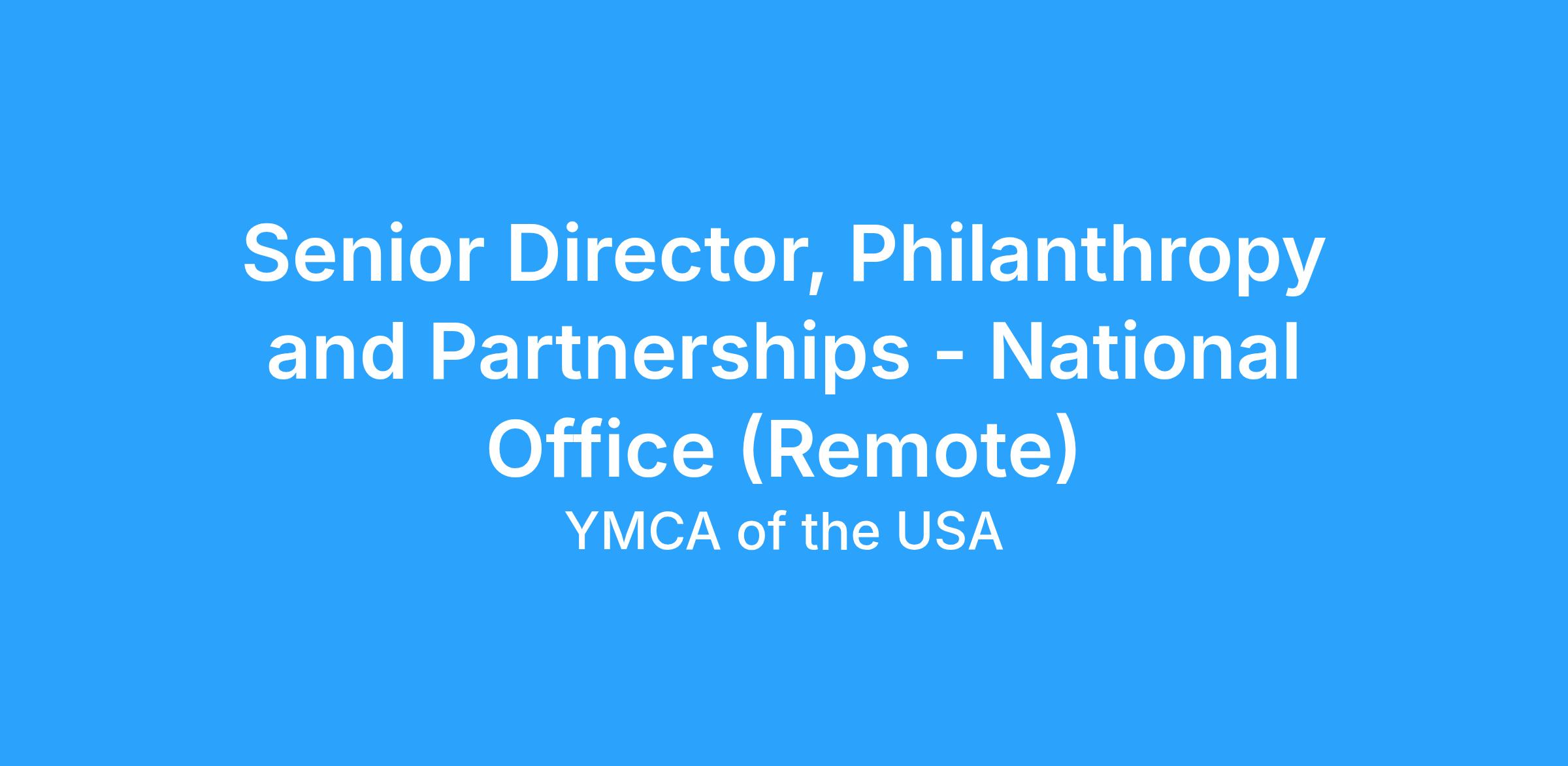 The Senior Director, Philanthropy and Partnerships is a front-line member of Y-USAβs fundraising team, responsible for securing the philanthropic resources necessary to reach and sustain YUSAβs $100 million annual fundraising goal in service to organizational priorities.Β Reporting to the Vice President of Financial Development, this individual will work in collaboration with the full financial development team to execute YUSAβs fundraising strategy, and they will be responsible for identification, qualification, solicitation, and ongoing stewardship of an assigned donor and partner portfolio spanning individual and institutional donors.Β They will work closely and collaboratively with members of the program, operations, and finance teams to ensure that prospective donor conversations and secured financial support are aligned to organizational priorities, building a sustainable foundation for current and future projects.Β The role will additionally partner with external stakeholders nationally across YMCA affiliates, Y-USA senior and executive leadership, and as needed with members of the National Board of Directors to build and advance donor relationships in service to maximizing philanthropy for the 10,000 communities the Y serves across the country.