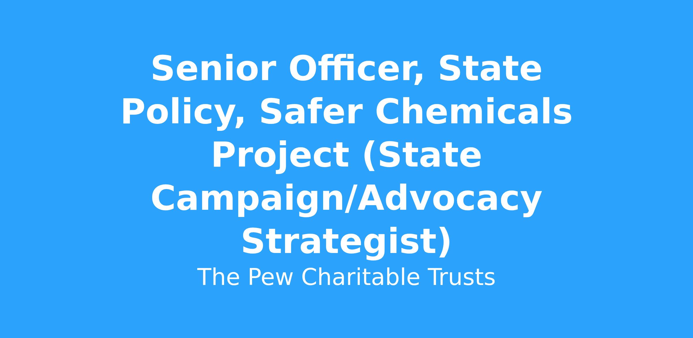 The Senior Officer, State Policy, Safer Chemicals Project, helps to advance the projectβs efforts to reduce Americansβ exposure to endocrine disrupting chemicals through state action, such as the adoption and effective implementation of state policies.