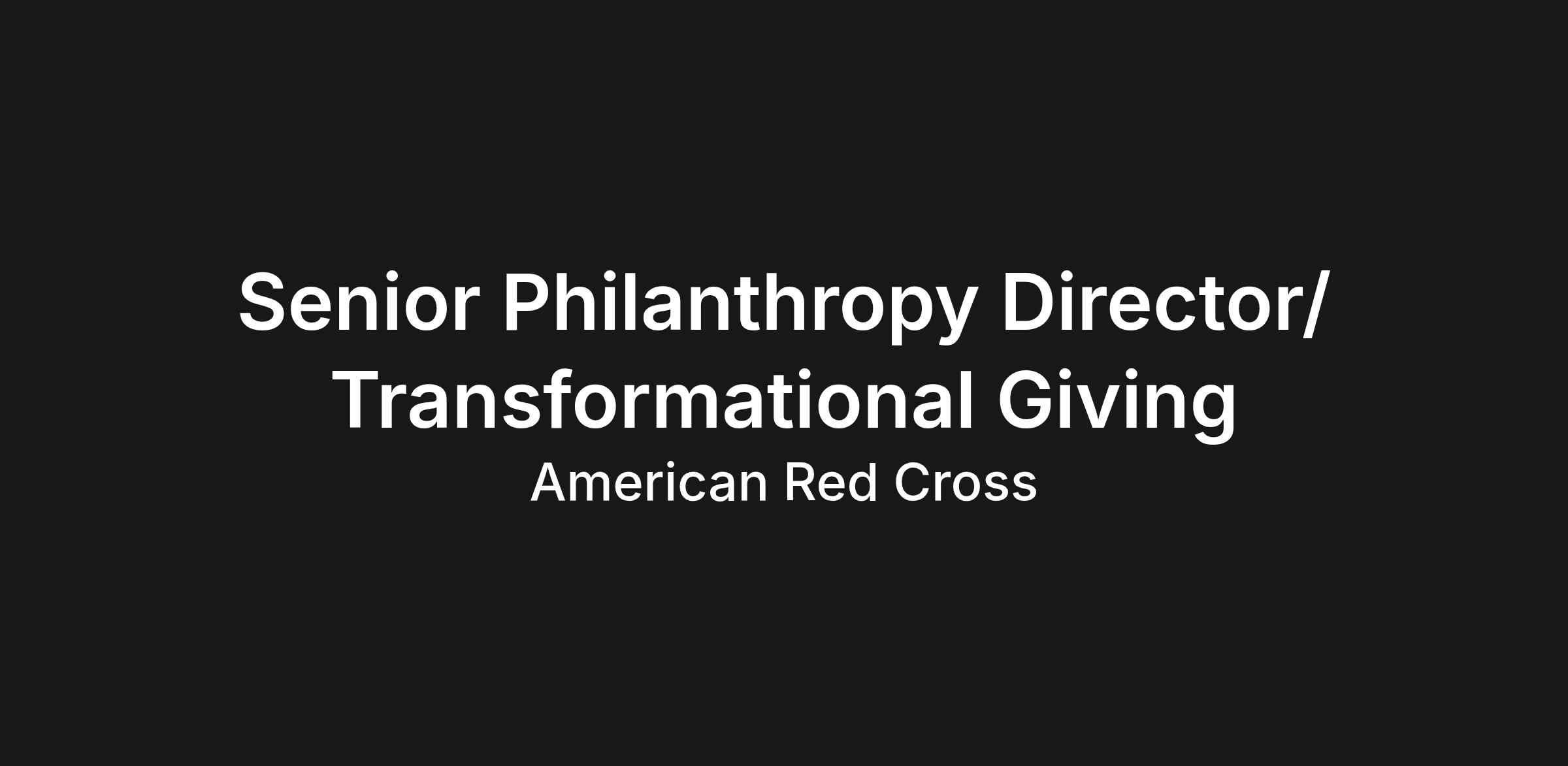 The American Red Cross is currently seeking a Senior Philanthropy Director to support the Transformational Giving team. An ideal candidate would reside in either the South Florida market (Miami, Ft Lauderdale, West Palm Beach or Ft. Myers) OR our Central South Texas market (Dallas, Houston or Austin).