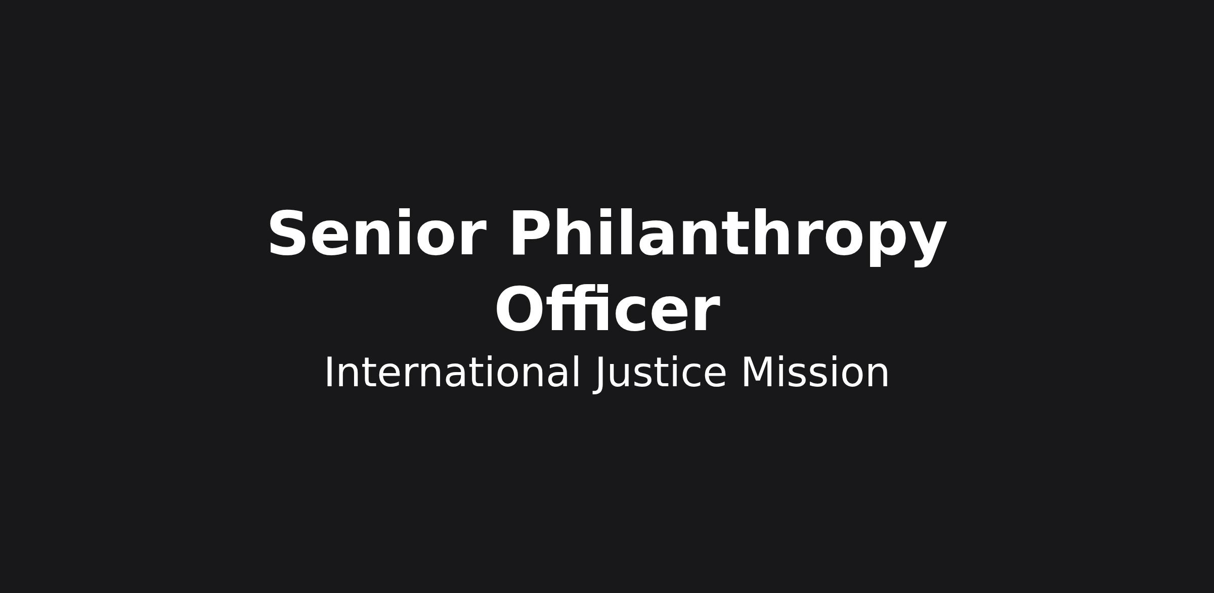 For over 25 years, IJM has pioneered the work to protect vulnerable people from violence. 9 out of 9 times in the last decade, IJMβs Justice System Strengthening Projects have reduced slavery and violence between 50 and 85% for very large populations of people in poverty. As we grow to expand our impact to protect 500 million people from violence, we are seeking a Senior Philanthropy Officer to join our team.