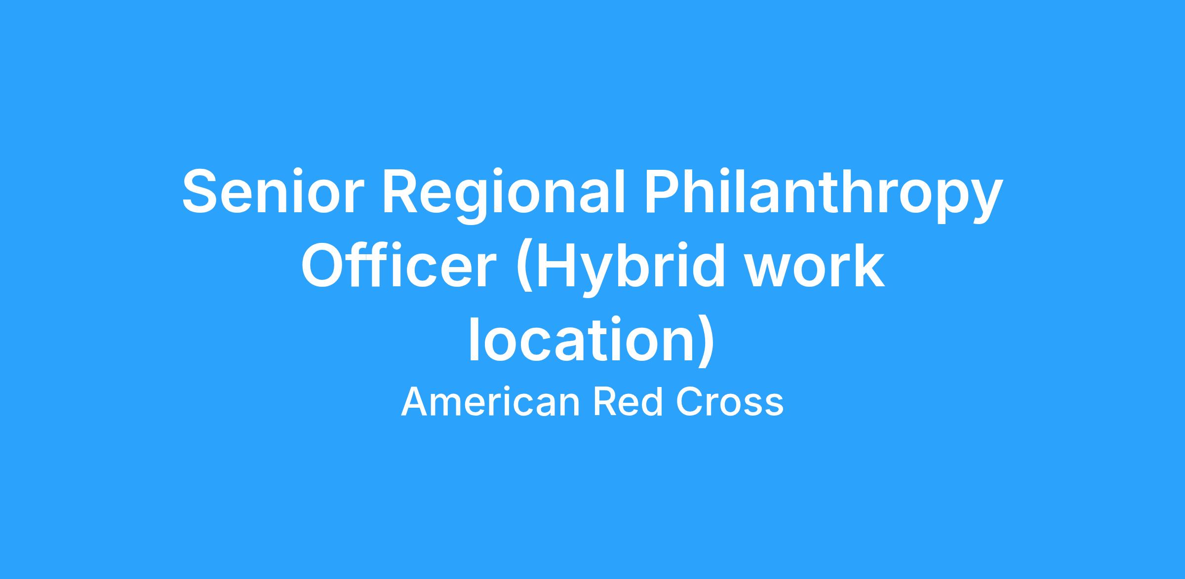 The American Red Cross is currently seeking a Senior Regional Philanthropy Officer to support our donors in Palm Beach.