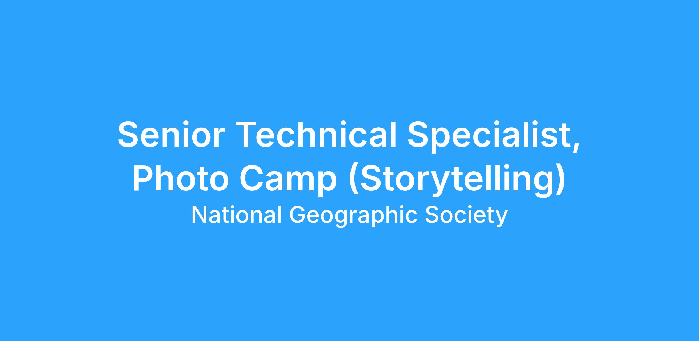 Serve as Sr Technical Specialist on Photo Camps in the Field (75%)