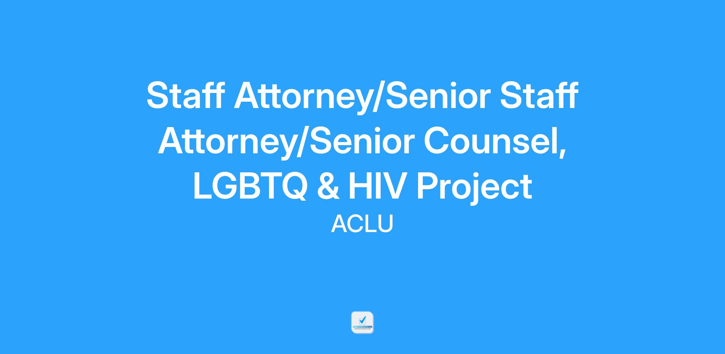 The ACLU seeks applicants for the full-time position ofΒ Staff Attorney,Β Senior Staff Attorney, orΒ SeniorΒ Counsel in the Lesbian, Gay, Bisexual, Transgender, Queer & HIV Project of the ACLUβs National office in New York, NY, San Francisco, CA, or Washington, D.C. This is a two-year, limited-term position. This is aΒ hybrid roleΒ that has in-office requirements of two (2) days per week or eightΒ (8) days per month.Β