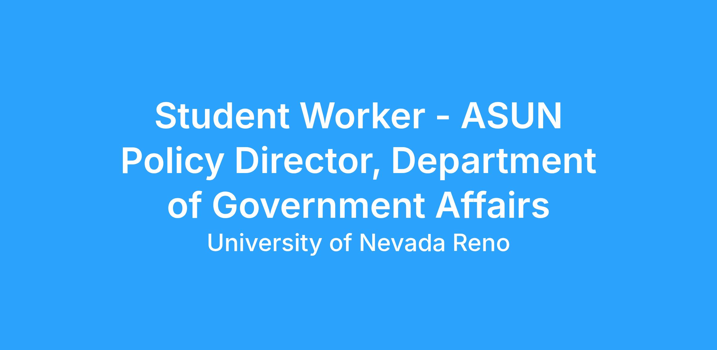 This ASUN Student Leader position is an appointed member of the student government. By applying for this position, you are considered a candidate for the position and must meet the requirements of eligibility for the office for which they are running as stated in the ASUN Constitution and the ASUN Statutes of the Associated Students. Applying for this position does not automatically employ you into this position and the candidate must partake in being interviewed by peers and to be appointed by the ASUN Senate to this position. Please refer to http://www.nevadaasun.com/documents/ for more information.